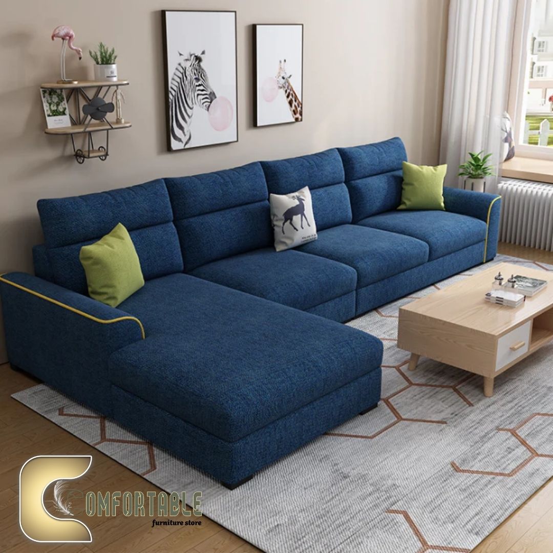 Elegant L Shape Sofa crafted from Solid Beech Wood, known for its strength and durability. Upholstered with High Density Foam for maximum comfort. Customize your sofa with a wide selection of Fabric & Colors to perfectly match your Modern Home Décor.