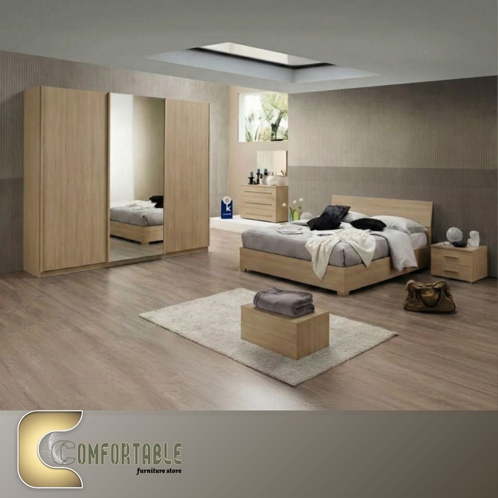 “هل تبحث عن التجديد؟ نقدم لك غرفة نوم ماستر بتصميم مودرن يخطف الأنظار. صممت هذه الغرفة لتكون واحتك الخاصة للراحة بعد يوم طويل، حيث تأتي بسرير مصمم هندسياً لدعم مريح، ودولاب بمساحات تخزين ذكية وواسعة تستوعب كافة احتياجاتك، بالإضافة إلى تسريحة ووحدات جانبية (كومود) تكمل أناقة الغرفة. نستخدم أجود أنواع الأخشاب والإكسسوارات لضمان عمر افتراضي طويل وشكل يظل جديداً بمرور الزمن.”