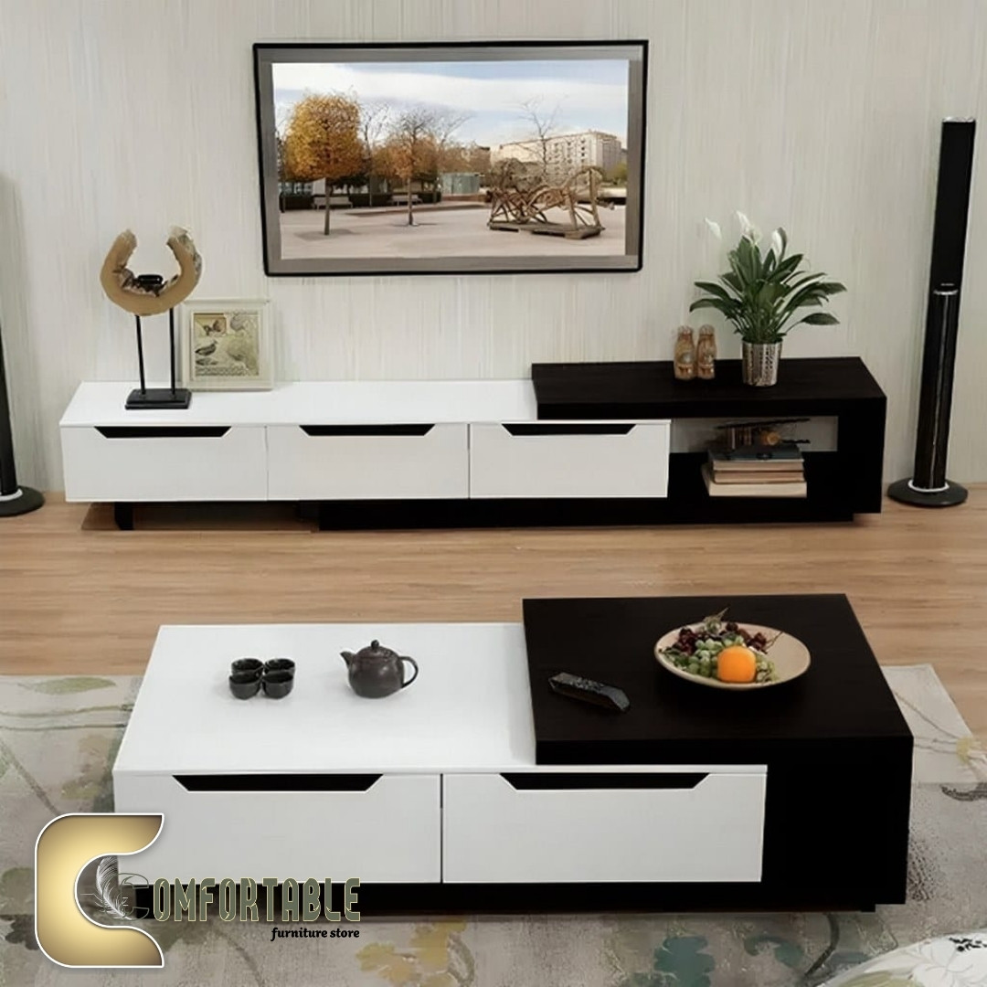TC2 وحدة تلفزيون + ترابيزة قهوة -أبيض ×أسود